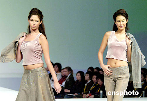 1月19日,香港會展中心舉行的“香港時裝節秋冬系列2005”上,模特在T型舞臺演繹“獨家時裝表演”專場的設計師最新服飾系列。作者:洪少葵