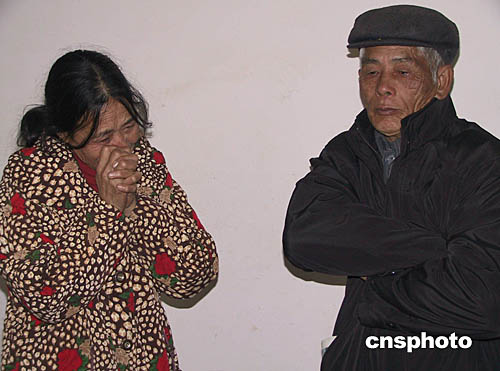 一月十九日,福建平潭十九歲勞工魏武在伊拉克被武裝分子綁架,其母薛金嬌(圖左)在接受記者采訪時(shí)希望中國(guó)政府能盡快救出其子。圖為當(dāng)?shù)乩先嗽谖杭覄裎恳恢笨奁难饗伞W髡?王東明