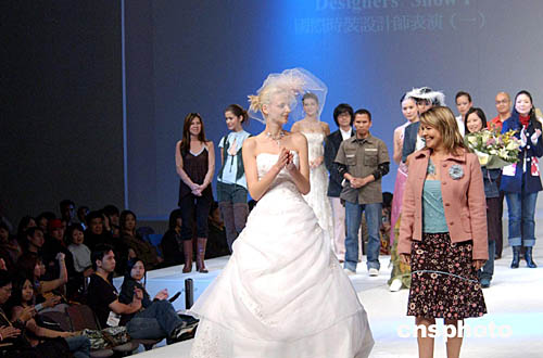 1月20日,在“香港時裝節(jié)秋冬系列”及“香港國際時尚薈萃”上,舉辦一場國際時裝設(shè)計師表演,圖為澳洲時裝設(shè)計師Roslyn Lakelin與模特登臺謝幕。作者:洪少葵