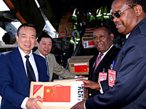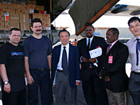 中新網1月24日電 中國外交部消息,2005年1月23日,中國政府捐贈給非洲海嘯受災國索馬里和肯尼亞的一批總價值1085萬元人民幣的救災物資空運抵肯尼亞首都內羅畢。