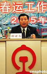一月二十五日,中國鐵道部副部長胡亞東在春運工作新聞發布會上說,今年鐵路春節運輸工作從一月二十五日開始至三月五日結束,預計全路發售旅客一點四五億人次。今年春運有三大特點:節前客流相對平穩,節后客流高度疊加,客貨矛盾突出。作者:王麗南