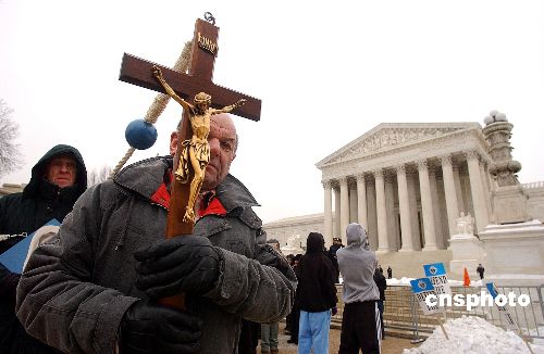 2005年1月24日,數萬民眾聚集在美國首都華盛頓最高法院前,舉行聲勢浩大的“反墮胎”游行,呼吁全面禁止墮胎,布什總統對此表示支持。Ic/cnsphoto 攝