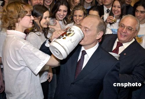 2005年1月25日,莫斯科大學(xué)隆重舉行成立250周年慶典活動(dòng)。俄羅斯總統(tǒng)普京前來(lái)道賀,與學(xué)生們一起海量痛飲,共慶盛典。作者:Ic/cnsphoto