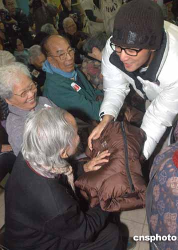 歌星謝霆鋒1月26日在香港與羽絨城攜手共襄善舉,在救世軍油麻地長者社區服務中心舉行《羽絨城送暖關懷行動》活動,向該中心獨居長者贈送300件羽絨服。作者:鄧慶樂