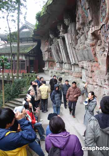 圖:臺灣大學生參觀世界文化遺產大足石刻