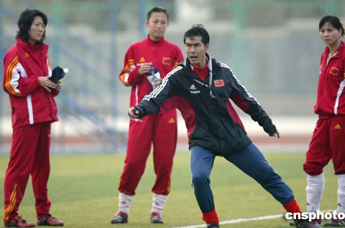 圖:女足“新帥”王海鳴訓練場上言傳身教