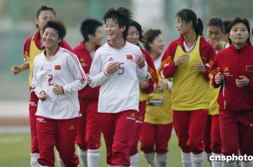 中國女足隊在泉州師范學院為備戰四國錦標賽作賽前的針對性訓練,保證球隊以最好的狀態和精神面貌迎接二十八日與俄羅斯隊的首場比賽。作者:盛佳鵬