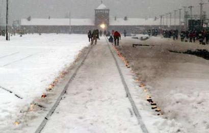 人們在奧斯維辛集中營點燃蠟燭紀念死難者(路透圖)