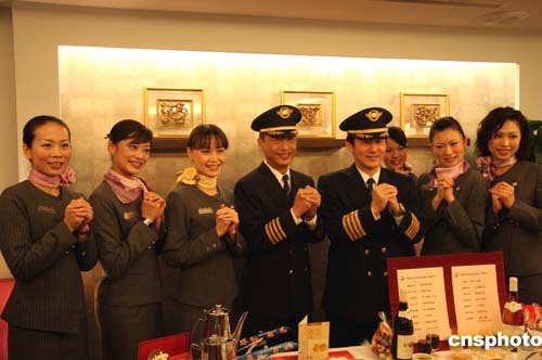 圖:臺灣“復興”航空首航臺商春節包機機組人員