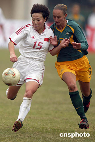 圖為中國女足十三號劉華娜(左)突破對方防守。