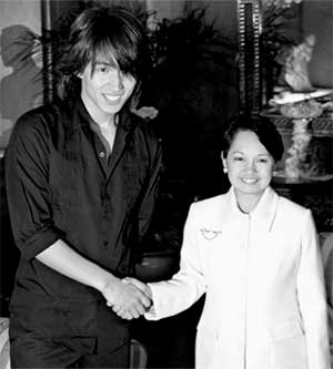 菲律賓媒體當(dāng)時(shí)報(bào)道稱,言承旭旋風(fēng)是在菲律賓進(jìn)行兩天一夜的宣傳行程中刮起的,拜《流星花園》所賜,他在當(dāng)?shù)氐闹群芨撸B總統(tǒng)阿羅約也邀約與他會(huì)面。阿羅約坦言,她看過(guò)《流星花園》,對(duì)言承旭能來(lái)菲律賓感到十分開心與歡迎,并稱贊他長(zhǎng)得很英俊,比電視里還好看。言承旭有些不好意思,以流利的英文感謝總統(tǒng)的支持,也表達(dá)了對(duì)她的敬佩。