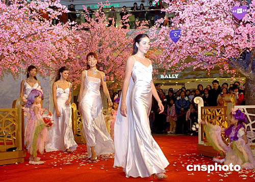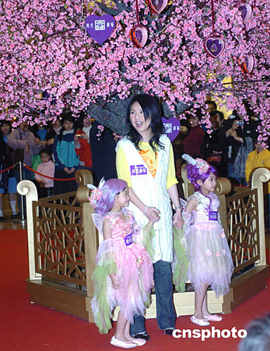 香港六位名模2日來到香港時代廣場二樓剛剛啟動的“閃爍動人桃花園”﹐享受春天的自然風光﹐營造情人節氣氛。中新社記者:趙振清