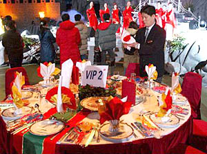 與家常菜形成鮮明對(duì)比的是,在某些大酒店推出了價(jià)位高達(dá)五萬(wàn)元人民幣的年夜飯和公司答謝宴。記者采訪了酒店相關(guān)負(fù)責(zé)人,他們表示為了方便公司答謝客人才準(zhǔn)備的答謝宴,是從市場(chǎng)和商業(yè)的角度考慮才有所設(shè)置的,且宴會(huì)的價(jià)格公司也能夠接受。所以,盡管有些筵席和年夜飯價(jià)位很高,但其走勢(shì)還是上升的。