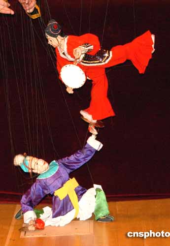當(dāng)?shù)貢r間二月七日晚,曾在全球四十多個國家演出過四千多場的中國福建泉州木偶劇團在聯(lián)合國總部舉行的中國春節(jié)文藝晚會上進行專場演出。演出結(jié)束后,畫家出身的聯(lián)合國秘書長安南夫人南.安南興致勃勃地來到后臺向演員了解木偶戲演出技巧。作者:龔文謨