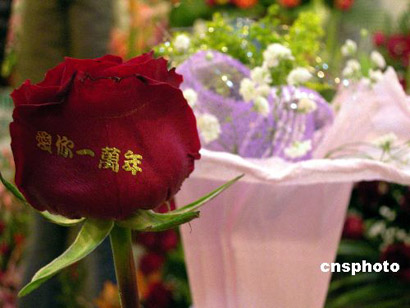 情人節前夕,錫城市場上的各種情人應節禮品、紅色玫瑰等受到年青人的追捧。無錫一些商家推出的許愿墻上許心愿活動異常火爆,對對情侶紛紛買來許愿牌、同心結,寫上祝福貼在各種“心”形墻上,希望能將情意綿綿的情話捎給心愛的人。作者:潘正光