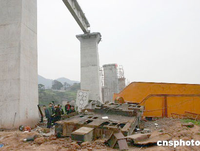 今天上午八點三十分左右,正在施工中的遂渝鐵路北碚區東陽謝家灣段鋪軌車突然發生翻塌,造成施工現場四名工人當場死亡,八人受傷,其中二人因傷勢過重,經全力搶救無效死亡。