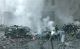 英國(guó)《獨(dú)立報(bào)》的記者費(fèi)思克告訴美國(guó)有線電視新聞網(wǎng):“現(xiàn)場(chǎng)非常血腥。我看到車內(nèi)有數(shù)具正在燃燒的尸體。爆炸留下的彈坑約有5米深,所以這是一枚大炸彈。至少有22輛小車仍在燃燒,其中一輛車被炸到三層樓那么高的地方。另一輛車看起來被炸到圣喬治賓館墻外面去了。在街對(duì)面,水正從破裂的水管中涌出。當(dāng)消防隊(duì)員到達(dá)現(xiàn)場(chǎng)時(shí),他們不得不將消防水管拖過遇難者的尸體以撲滅大火。”