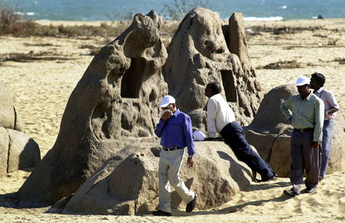 印度沿海水底古城馬哈巴利普蘭所在地是海嘯災區之一,海嘯過后,該城鎮附近露出三個石結構,上面都刻有精細的動物畫像。這是因為海嘯過后,覆蓋在結構上的沙層被沖走。印度考古研究所高級考古學家薩蒂亞穆蒂說,這些結構,可能屬于這個建于七世紀的港口城市。