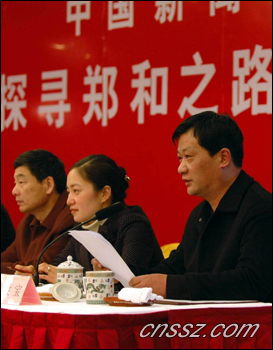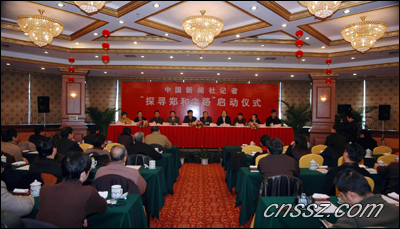 為紀(jì)念鄭和下西洋六百周年,中新社派出文字記者韓勝寶、攝影記者蔣振江,帶了一百多個探尋題目,采訪海內(nèi)外鄭和研究的專家學(xué)者,探訪鄭和的遺跡,從政治、軍事、航海、經(jīng)貿(mào)、文化、科技、外交、宗教等領(lǐng)域,通過文字和圖片全方位向世人揭示許多鮮為人知的鄭和之謎,宏揚鄭和偉大的民族精神。探尋活動至七月十一日鄭和七下西洋紀(jì)念日前返回,歷時四個月。主要采訪地在東南亞一帶還有國內(nèi)的云南鄭和出生地、福建泉州鄭和停泊港和南京鄭和造船地。參加活動儀式的還有中新社副總編田惠明、總編輯助理張明新和江蘇分社社長陳光明。來自上海、南京、蘇州等地的新聞界人士也參加了儀式。
