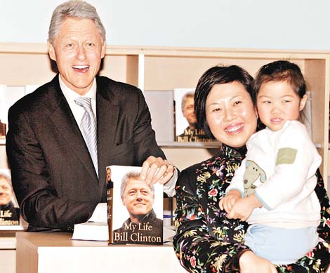 據香港《大公報》報道,克林頓這次是順道來港舉行簽名會。今日他將前往中國內地繼續私人訪問行程,稍后會到中國臺灣、韓國及日本等地繼續舉行自傳簽名會?肆诸D的發言人Jim Kennedy表示,這次是克林頓自去年九月進行心臟搭橋手術后時間最長的旅程,其健康情況良好?肆诸D的自傳在美國的銷量高達二百萬本,其妻子希拉里自傳的銷情都不錯,亦有一百七十萬本。