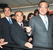國民黨昨天推出大陣仗接機,黨務干部從秘書長林豐正、一級主管們通通到場,副主席有王金平、馬英九、林澄枝,另三位副主席江丙坤、蕭萬長及吳伯雄都未到,但吳伯雄的兒子、新科“立委”吳志揚代表前往接機。