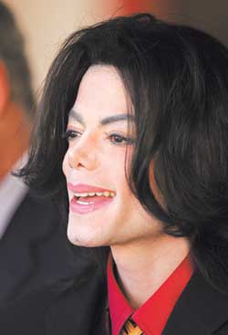 ·法庭審判扮無辜 邁克杰克遜衣著有講究(圖) (2005-02-03)
