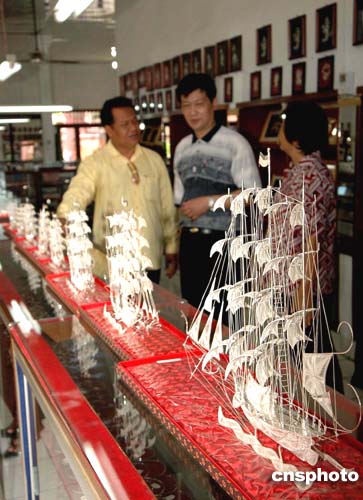 “探尋鄭和之路”的中新社二記者來到巴厘島民族村,這里留有鄭和下西洋深深的印記。在一銀飾展覽館,當地銀匠為紀念鄭和下西洋600周年,用銀制成的鄭和下西洋寶船十分精美。銀店老板對記者說,鄭和下西洋開展海上貿易,給巴厘島帶來了繁榮,也使我們學會了中國精湛的制銀工藝。我們制作鄭和銀寶船,就是為了紀念鄭和這位偉大的航海家。作者:蔣振江