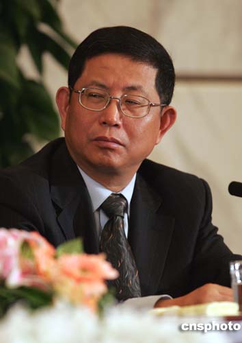 三月七日,十屆全國人大三次會議舉行記者招待會,國家發展和改革委員會主任馬凱、中國人民銀行行長周小川、銀監會主席劉明康、國土資源部副部長李元回答記者提問。圖為李元在記者招待會上。作者:毛建軍
