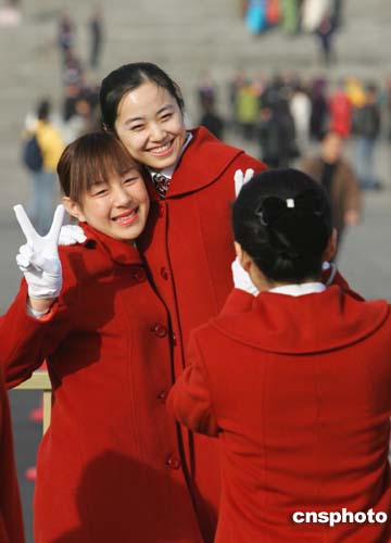 ·圖:北京會議中心禮儀小姐亮相天安門廣場 (2005-03-04)