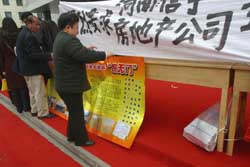 三月十五日,在河南鄭州一個“3.15”投訴現場,一名老者投訴自己商品房出現的問題。國家工商行政管理總局負責人已經表示,今年受理商品房消費申訴近萬件,已經成為投訴熱點。主要問題是房屋和附加設施質量差;合同違約或不公平條款;房屋面積不足、延期交房、無法辦理房產證等。作者:慎重