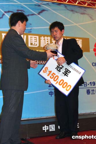圖:韓國“石佛”李昌鎬在第五屆春蘭杯奪冠