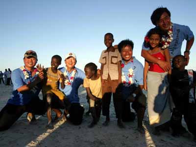 當地時間十九日晚,肯尼亞的專業合唱團體以及少兒演員載歌載舞歡聚一堂,在蒙巴薩白沙海灘,以獨特的非洲風情歌舞,盛迎抵達蒙巴薩的“鳳凰號”,以及前來迎接鳳凰號的中國客人。肯尼亞合唱團用中文演唱的中國民歌《在那遙遠的地方》博得全場熱烈掌聲。美麗的“二OO四肯尼亞小姐”朱麗葉、在肯留華校友會主席哪吒先生,與鳳凰衛視主持人竇文濤和陳魯豫共同主持了晚會。完