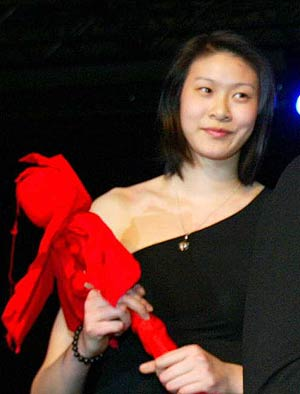 一襲黑色長裙,露出半邊肩膀,是好萊塢剛流行過的式樣。趙蕊蕊顯然是無法習(xí)慣這樣性感的裝束,羞答答地上了臺。直到迎上帥哥索普贊許的眼神,更是露出一臉羞澀的笑容。“還真不習(xí)慣這樣穿,別扭極了。”說話聲音一如平時(shí)的爽朗,“還是運(yùn)動(dòng)衣更符合我的氣質(zhì)。”這樣的曳地長裙,還會再穿么?“也許不會了吧。”