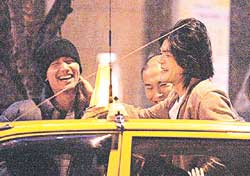 言承旭扶貌似金城武的露底男友人上的士,對方臨走時還摸摸言承旭的臉講拜拜。(來源:光華日報)