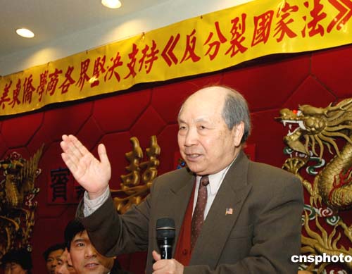 當地時間三月二十六日,美東僑學商各界舉行誓師大會堅決支持《反分裂國家法》,旅美臺胞成功教授指出,“臺獨”勢力歪曲《反分裂國家法》,意在誤導臺灣民眾。作者:龔文謨