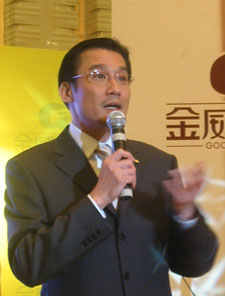 中新網3月28日電 剛在《太行山上》扮演硬漢軍人的著名香港影星梁家輝,于3月28日下午出現在人民大會堂浙江廳,名為“賞心悅目,金威男人”的發布會正在這里舉行。