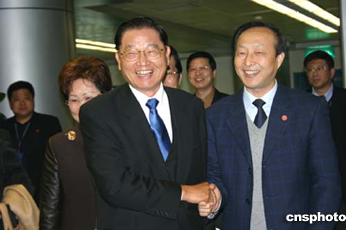 圖:江丙坤一行抵達南京 受到熱烈歡迎