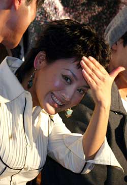 中新網(wǎng)3月30日電 據(jù)北京娛樂信報(bào)消息,昨天下午,香港導(dǎo)演麥子善最新力作懸疑警匪片《借兵》在京舉行了首映式,導(dǎo)演麥子善偕同主演寧?kù)o、伍嘉龍等接受了采訪。