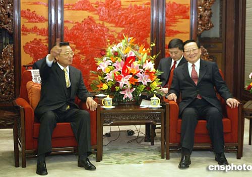 三月三十一日,國務委員唐家璇在北京與中國國民黨副主席江丙坤舉行會談。作者:廖文靜