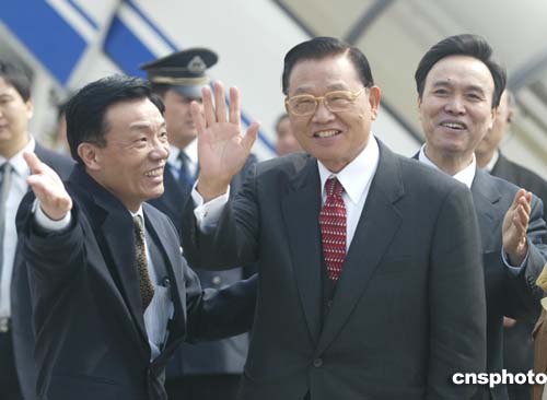 圖:江丙坤完成“經(jīng)貿(mào)之旅、緬懷之旅”揮手告別北京