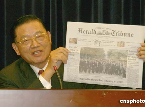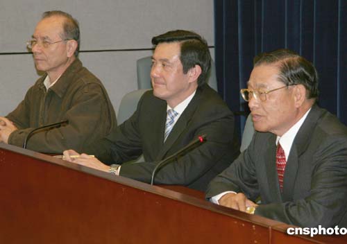 四月一日晚,中國國民黨參訪團完成在大陸五天四夜的行程,搭乘飛機返臺。圖為國民黨副主席江丙坤出席在桃園機場的記者會,他稱此行不僅是“緬懷之旅、經貿之旅”,也是一次“搭橋之旅”。作者:趙江濤攝