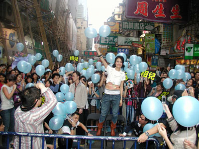 簽名會(huì)期間,突然有一位男歌迷向她求婚,令祖兒有點(diǎn)尷尬,不知所措。這位叫“阿榮”的歌迷,當(dāng)眾跪下向她求婚,與他同來(lái)的一位友人,就替他拿著一張寫滿了對(duì)Joey愛的情信,這位歌迷更是有備而來(lái),準(zhǔn)備了戒指作為求婚之用。主持人問(wèn)到Joey是否第一次收到求婚戒指,她笑言:“都不知道收到多少啦!哈哈。”事后問(wèn)到她有沒(méi)有被他的舉動(dòng)嚇驚?她坦言有點(diǎn)驚,但因她的歌迷過(guò)去都有不同方式向她示愛,千奇百怪,而且很猖狂,早就慣了面對(duì)。記得曾有歌迷送了一個(gè)金牌給她,上面寫著“對(duì)你的愛永不完”,亦有位歌迷寄了一張請(qǐng)?zhí)o她,上面的名字竟然是Joey和那位男方的名字。