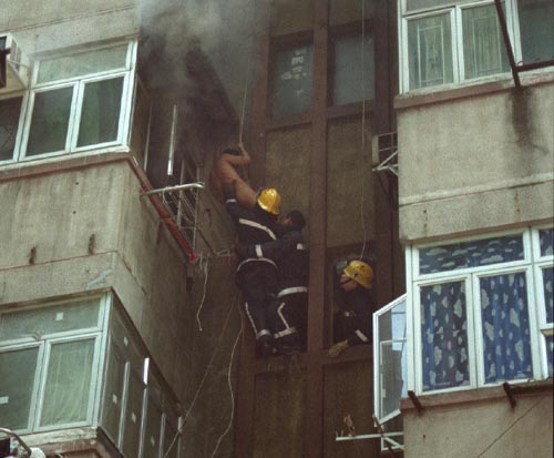 全裸逃命的男子姓王(三十一歲),居住上海街六十號四樓一個單位。據悉,他一向有裸睡習慣,昨天上午留在家中沒有外出,并臥床抽煙,不久后又睡著。至中午十二時零二分,王在睡夢中被煙嗆醒,發覺屋中雜物起火,大驚下不顧赤身露體從窗口爬出外墻躲避。