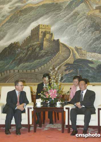 四月七日,中國全國人大常委會委員長吳邦國在北京人民大會堂會見來訪的哥倫比亞總統烏里韋。作者:史利