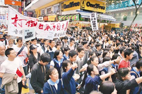 中新網4月18日電 據香港文匯報報道,上萬名香港市民昨日以游行反對日本右翼團體篡改歷史教科書,反對日本侵占中國領土釣魚島,反對日本成為聯合國常任理事國。