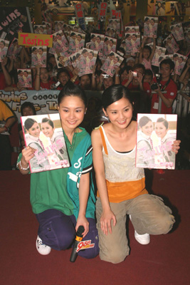 中新網4月19日電 據香港《大公報》報道,Twins繼早前旋風式登陸臺灣及內地多個地方為國語專輯《見習愛神》宣傳,昨日起程往馬來西亞,抵步后即于市中心一所商場舉行簽名會。當地政府調動數十軍人維持秩序。簽名會下午四時開始,但早上七時已有Fans排隊,到中午時份已有數千人到場拿簽名籌,瞬間三千個籌已派光;監于人實在太多,龍尾更排至商場外,場內圍觀人數達過萬人,有關當局更調動數十位軍人幫忙維持秩序,直至差不多開始簽名會時,場內足足達萬人圍觀。為滿足一些fans來自星馬及臺灣等地,逐一為沒有拿到籌的fans簽名,足足簽了七千人之多。