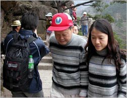 據(jù)悉,4月16日是黃山天都峰結(jié)束5年封山后,第一天向游客開放。很多游客當天見到楊振寧夫婦身著情侶裝,手牽著手漫步走過排云亭。楊老先生的精神狀態(tài)很好,不時的指著遠處的山峰景色給愛妻介紹。 (吳永泉)