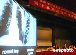 四月十九日,在第十屆職業(yè)性呼吸系統(tǒng)疾病國際會議上,展示患者胸腔透視。目前,中國有毒有害企業(yè)超過一千六百萬家,受到職業(yè)危害的人數(shù)超過二億,其中塵肺病占百分之八十。職業(yè)病已經(jīng)成為中國重大公共衛(wèi)生和社會問題。作者:韓藝冰