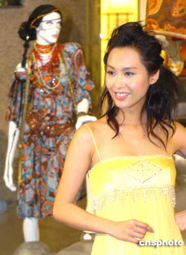 香港女星朱茵20日出席在香港時代廣場舉行的05春夏潮流展覽﹐展示窈窕身材。作者:趙振清