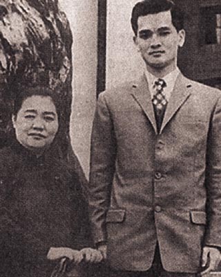 連戰(zhàn)留學(xué)前與母親趙蘭坤在自家庭院的合影。(香港《大公報》圖)
